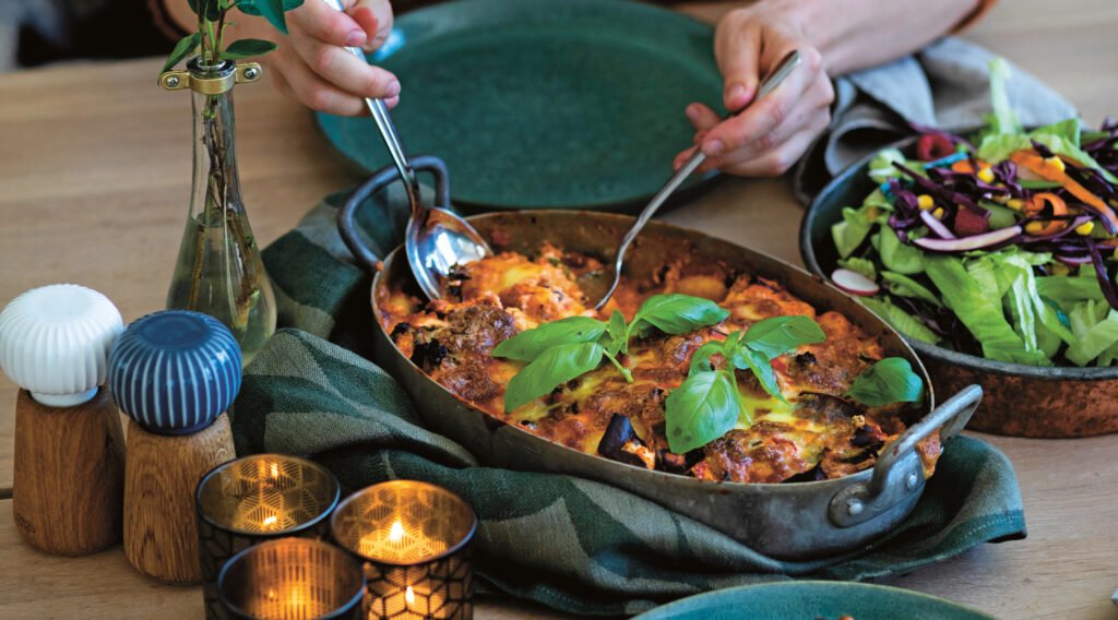 Tillagningen tar 10 minuter, sedan skjuts in i ugnen! Bönor ihop med grova grönsaker gör den här krämiga gratängen fiberrik för ett långsammare blodsockersvar.